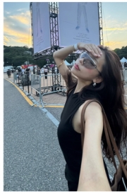 宋妍霏纽约时装周看秀,ALL BLACK造型好惊
